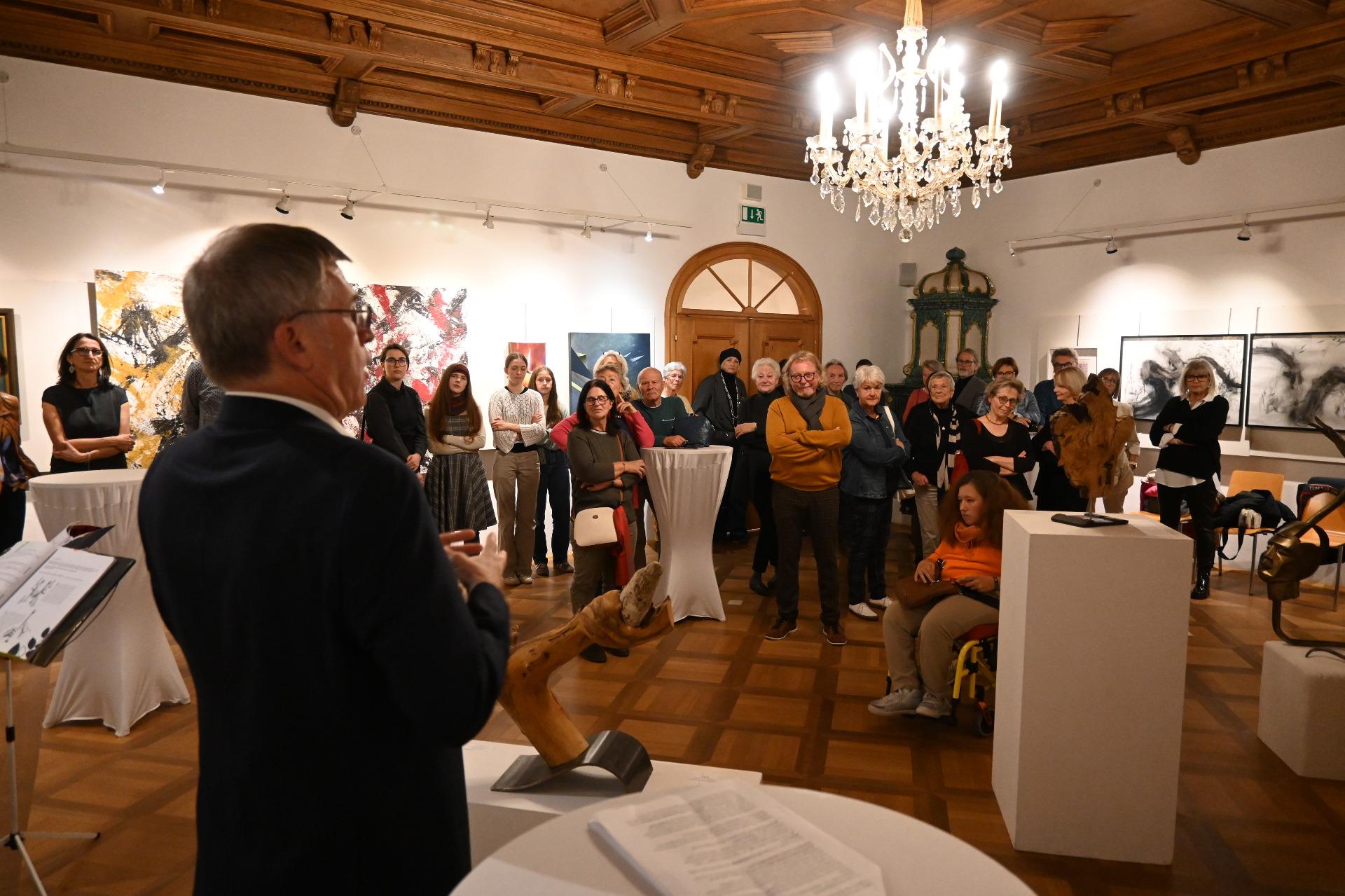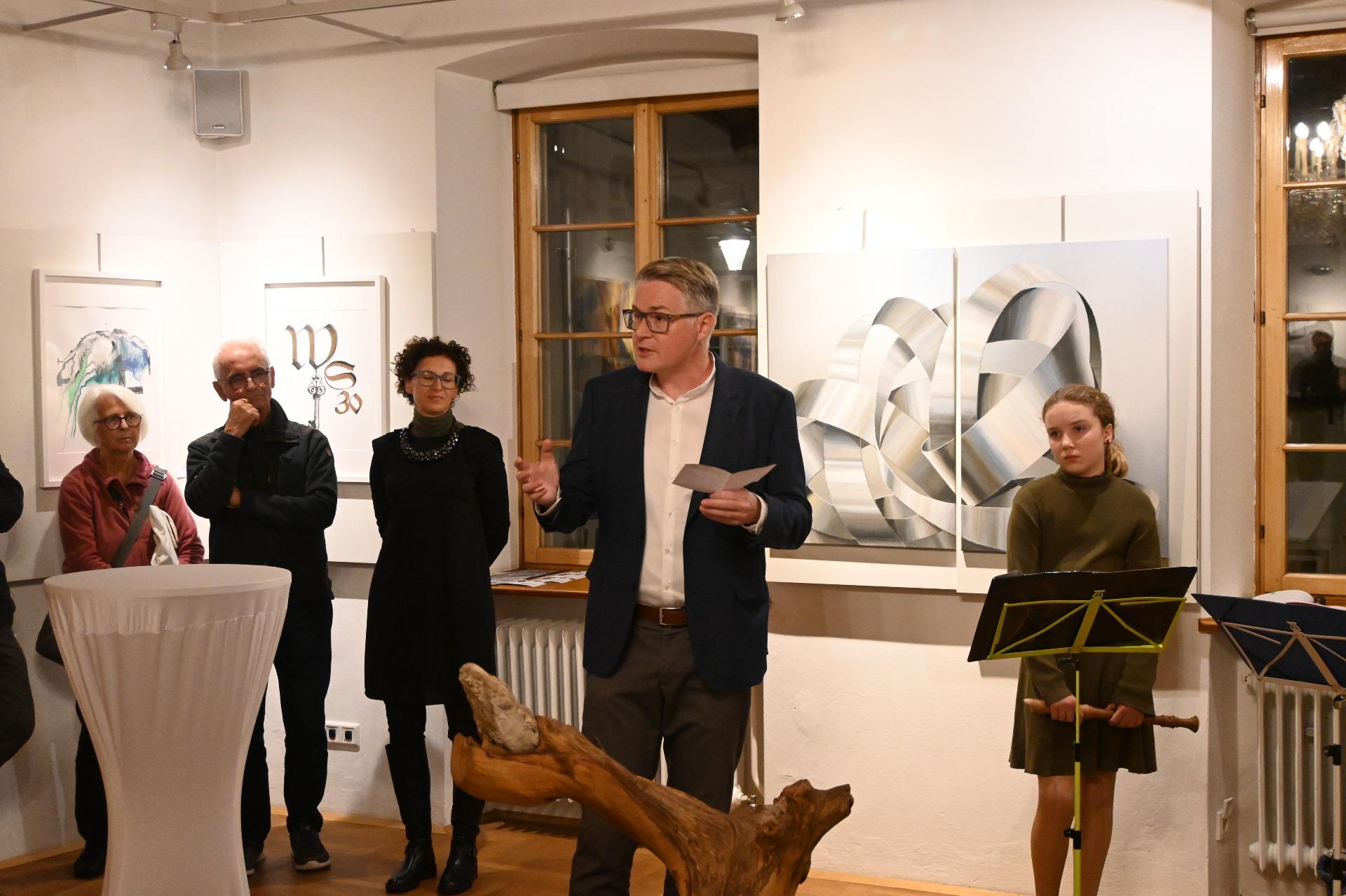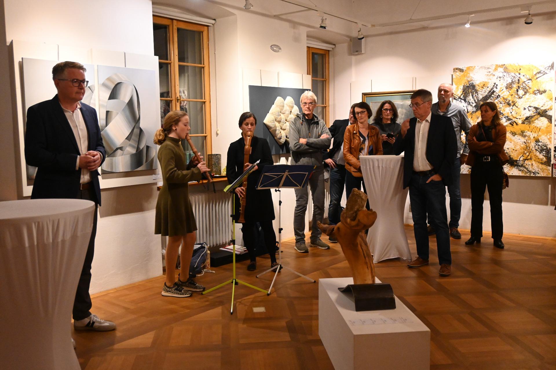 Am Donnerstag, 9. Oktober 2025 fand die Vernissage in feierlichem Rahmen dazu statt. Ein Flötenduo der Musikschule unter der Leitung von Kerstin Picker umrahmte diesen besonderen Anlass.