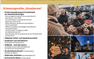 Erlebniswanderweg Schmiedemeile zur Handwerkerkrippe I Ybbsitzer Schaf- und Alpakabauernhof I Ausfeuern von Holzfässern I FeRRUM - welt des eisens I Kinderholzwerkstatt I Südtiroler Schnitzer I Kulinarische Reise I Prämierung Schmiedewettbewerb