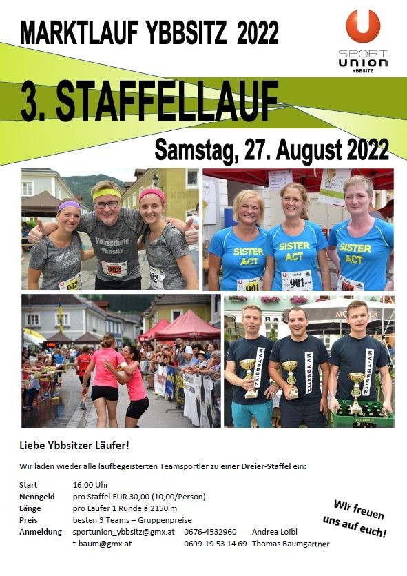 Die Sportunion lädt alle laufbegeisterten Teamsportler zu einer Dreier-Staffel ein: