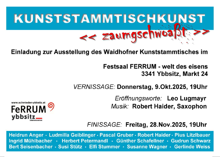 Einladung zur Ausstellung "zaumgschwoaßt" des Waidhofner Kunststammtisches von 9. Oktober bis 28. November 2025