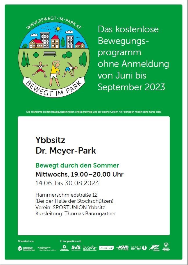 Kostenloses Sportangebot der Sportunion Ybbsitz von Juni - August 2023 - jeweils Mittwoch von 19.00 - 20.00 Uhr,