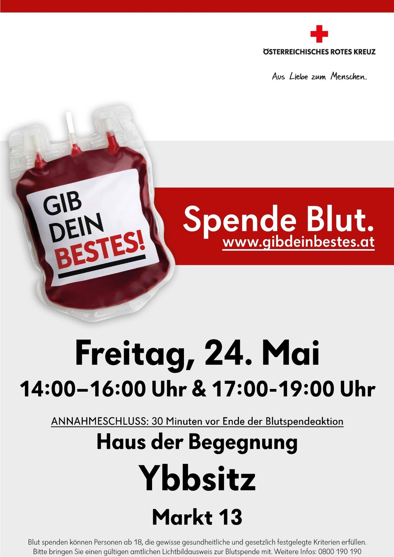 Annahmeschluss: 30 Minuten vor Ende der Blutspendeaktion