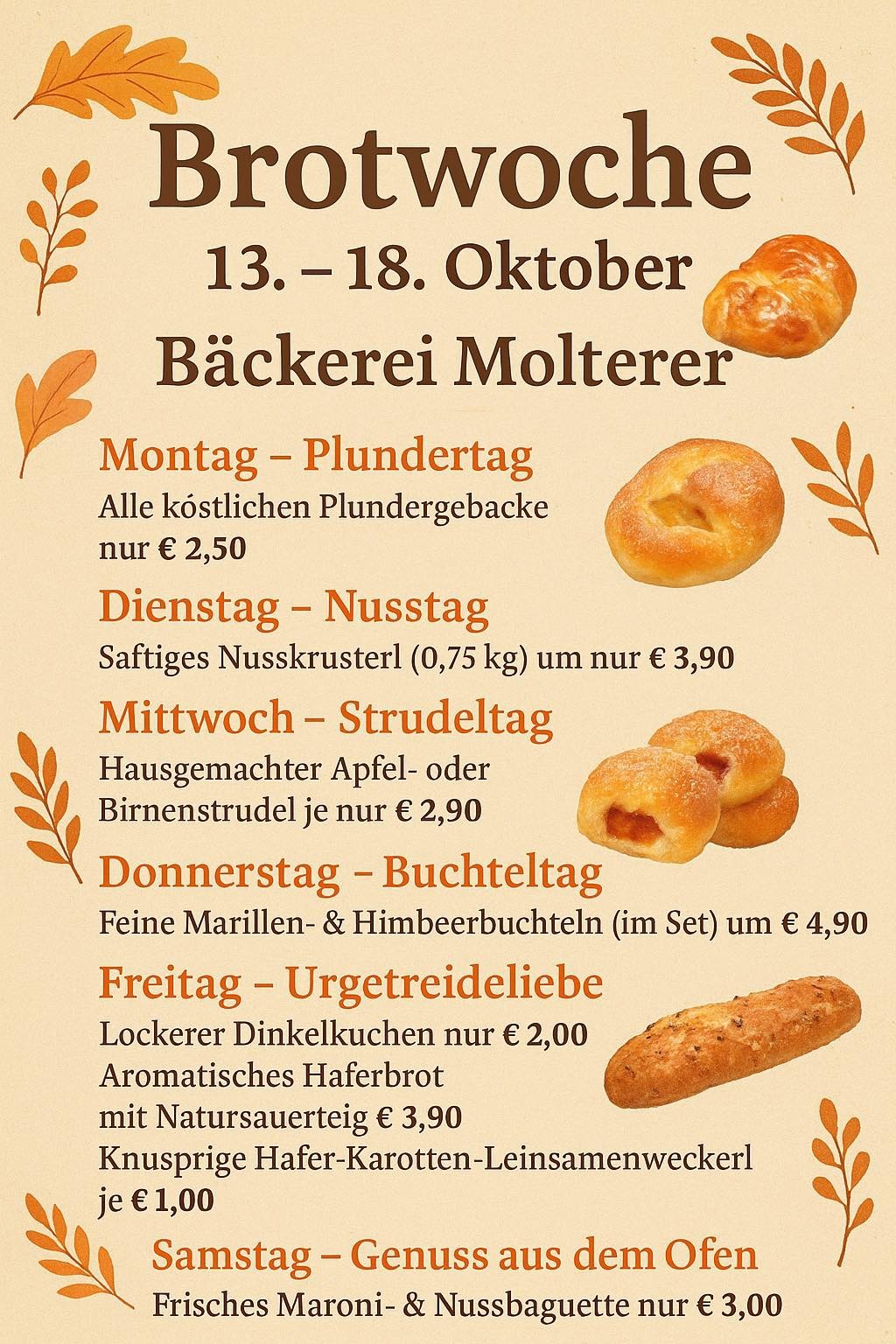 Bäckerei Molterer, 13. - 18. Okt. 2025