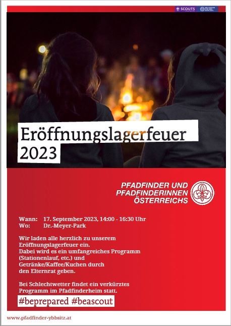Zum Start in das neue Pfadfinderjahr lädt die Pfadfindergruppe Ybbsitz zum Eröffnungslager in den Dr. Meyer-Park von 14.00 - 16.30 Uhr ein!