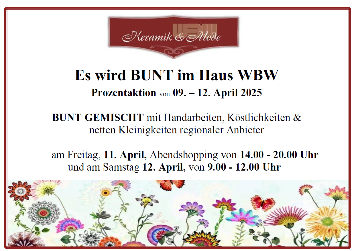BUNT GEMISCHT mit Handarbeiten, Köstlichkeiten & vielen netten Angeboten regionaler Anbieter
