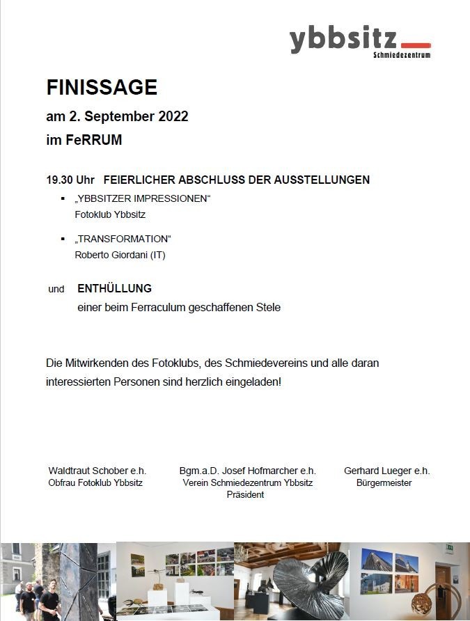 Die Marktgemeinde Ybbsitz der Fotoklub Ybbsitz und der Verein Schmiedezentrum freuen sich auf Ihr Kommen!