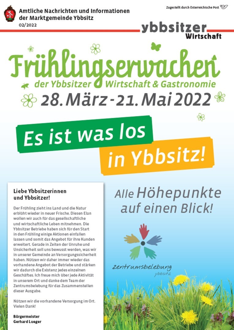 Im aktuellen Postwurf "Frühlingserwachen in Ybbsitz" erhalten Sie Informationen und Angebote der Ybbsitzer Betriebe.
