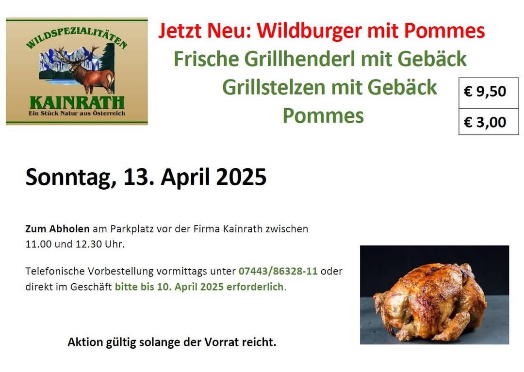 zum Abholen am Parkplatz vor Geschäft Kainrath