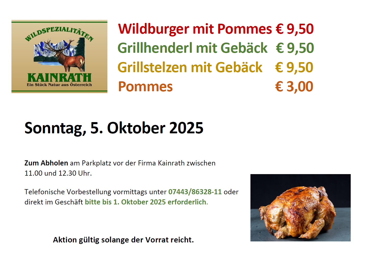 Grillhendel, Stelzen und Wildburger zum Abholen