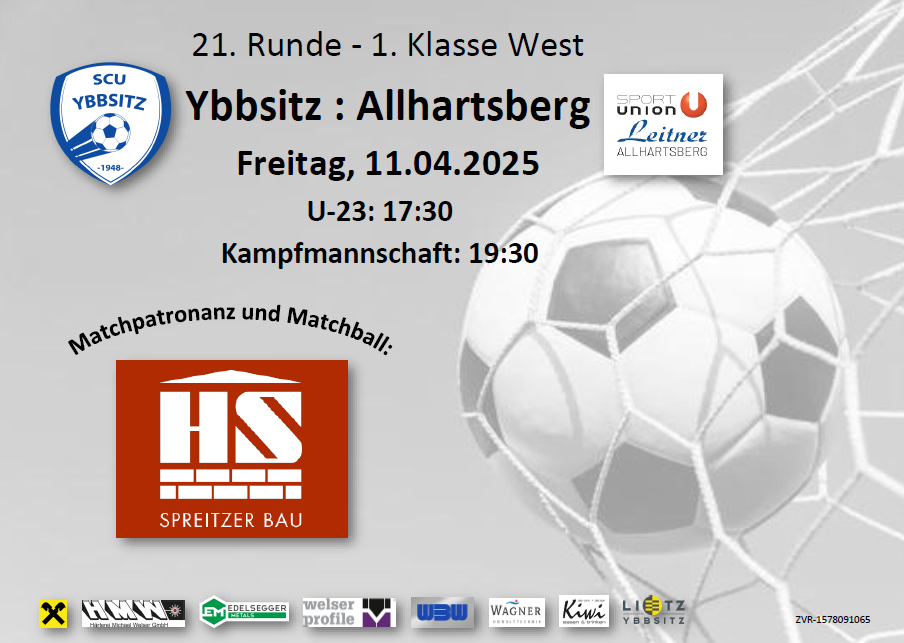 Freitag, 11. April 2025 - Beginn U-23 17.30 Uhr / Kampfmannschaft 19.30 Uhr