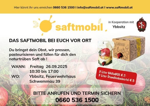 Das SAFTMOBIL vor Ort - in Kooperation mit der Marktgemeinde Ybbsitz:
