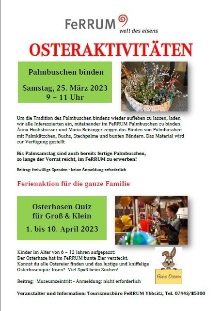 Um die Tradition des Palmbuschen bindens wieder aufleben zu lassen, laden wir alle Interessierten in das Haus FeRRUM ein.