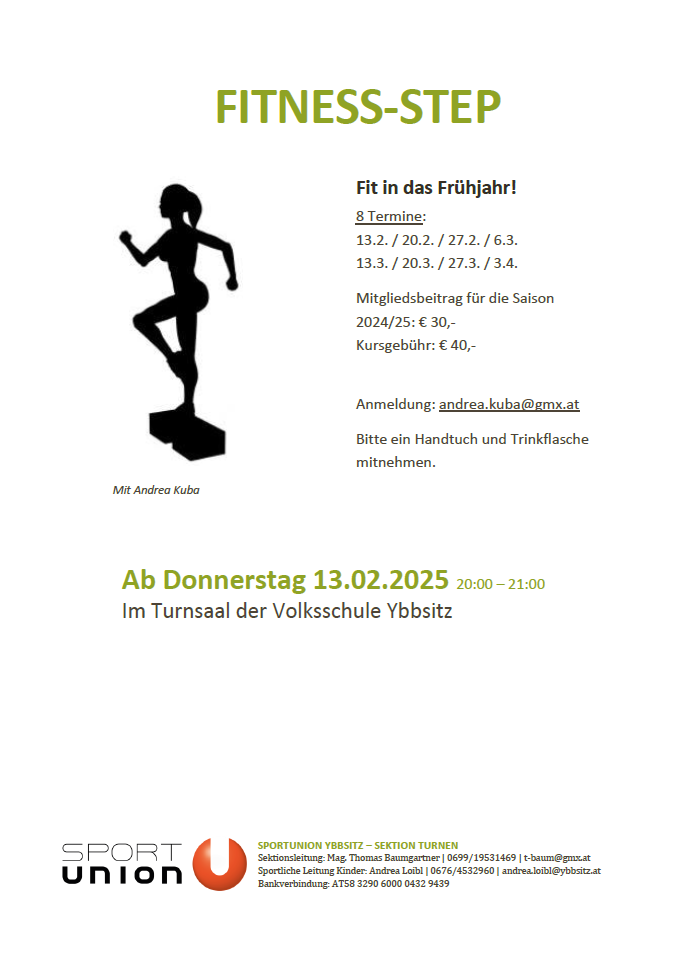 Fitness-Step: Kursstart Donnerstag, 13. Februar 2025, 20.00 - 21.00 Uhr