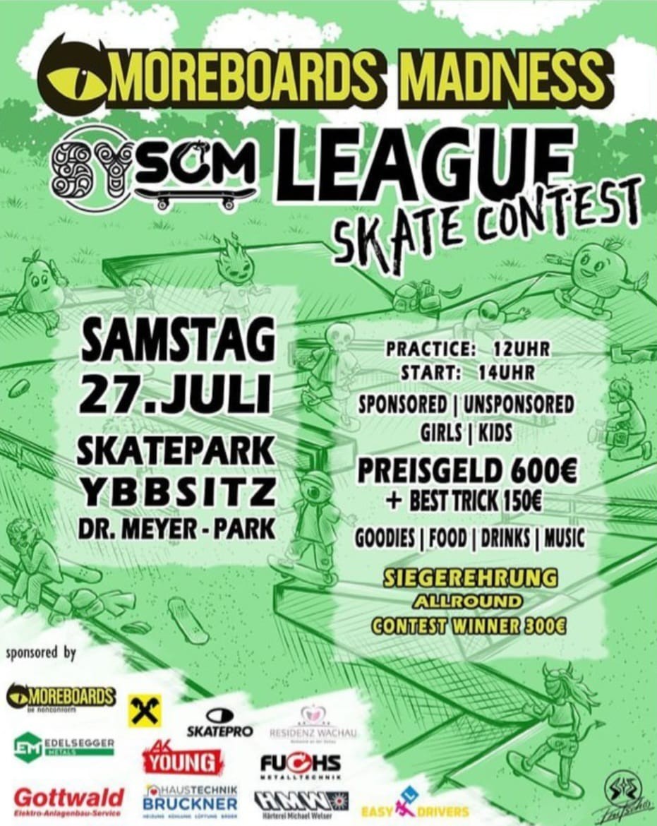 Der Skateverein Ybbsitz veranstaltet gemeinsam mit der Skateboard Community Mostviertel den SCM League Skate Contest.