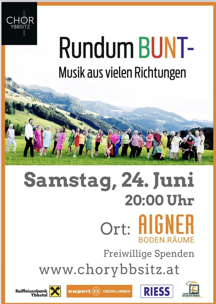 Der CHOR Ybbsitz lädt zum Sommerkonzert unter dem Motto "Rundum bunt - Musik aus vielen Richtungen" in die Firma Aigner Bodenpersonal am Samstag, 24. Juni 2023 herzlich ein!