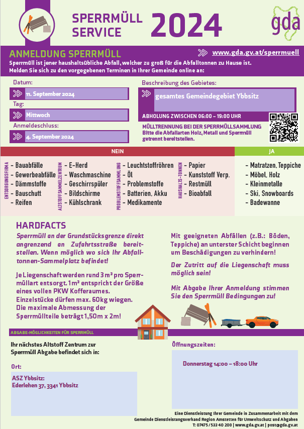 Das Sperrmüllservice ist eine Dienstleistung der Marktgemeinde Ybbsitz in Zusammenarbeit mit dem
