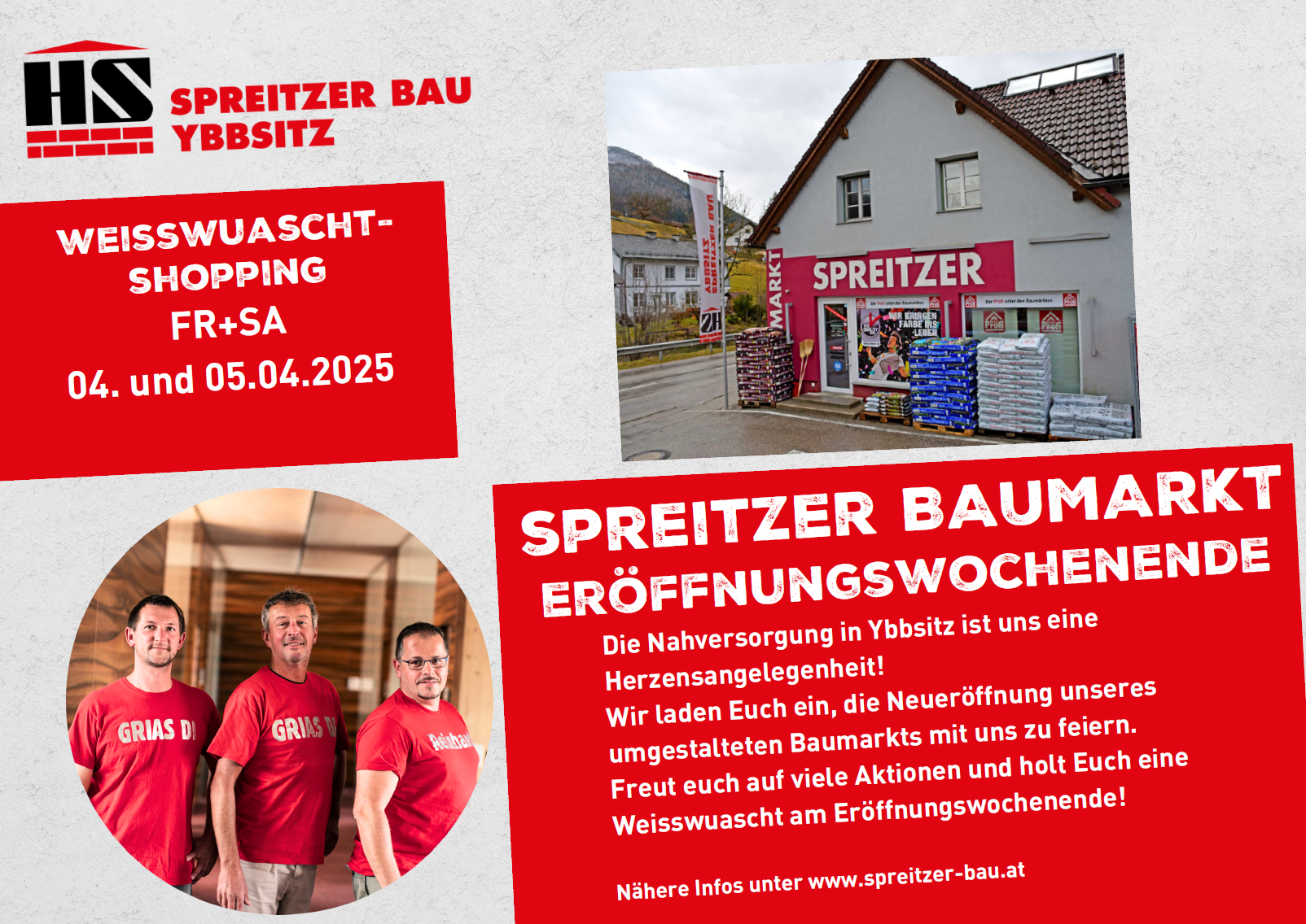 Firma Spreitzer lädt ein die Neueröffnung des umgestalteten Baumarktes zu feiern.
