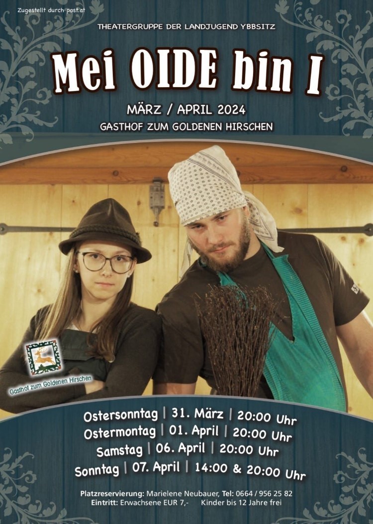 Die Theatergruppe der Landjugend Ybbsitz lädt zum Stück "Mei OIDE bin I" ein: