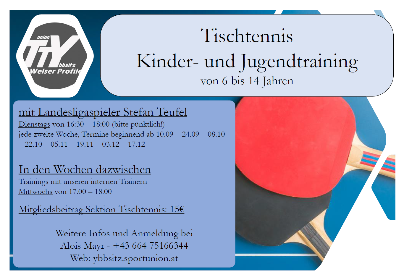 Die Sportunion Ybbsitz - Sektion Tischtennis bietet ab Herbst im Vereinslokal in der Mittelschule Ybbsitz ein