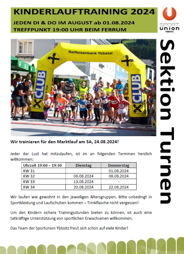 Training für den 35. Marktlauf Ybbsitz - 5. Lauf zum Moststraße-Laufcup 2024 - Samstag, 24. August 2024