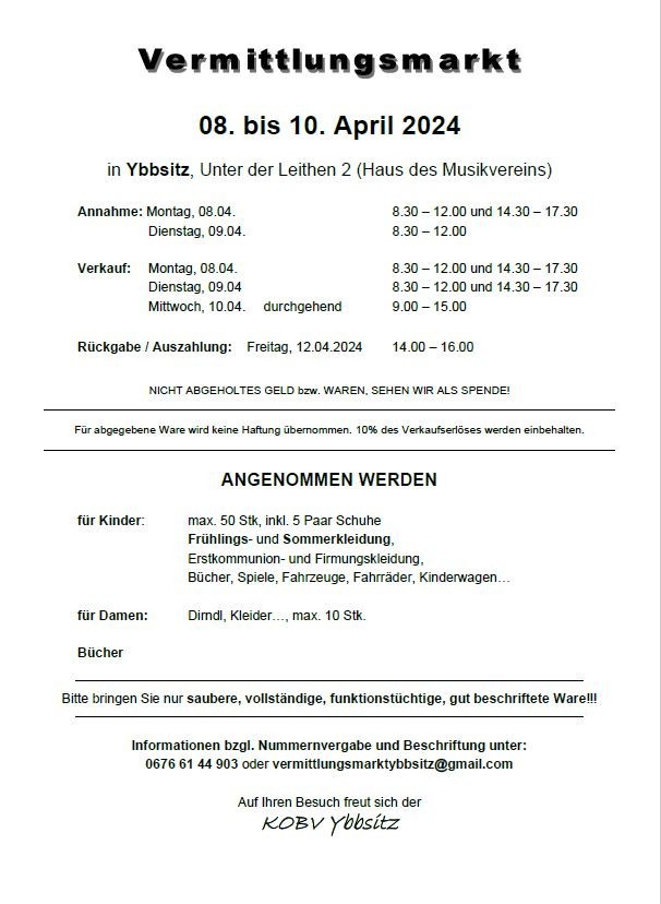 Tel. 0676 / 61 44 903 oder vermittlungsmarktybbsitz@gmail.com