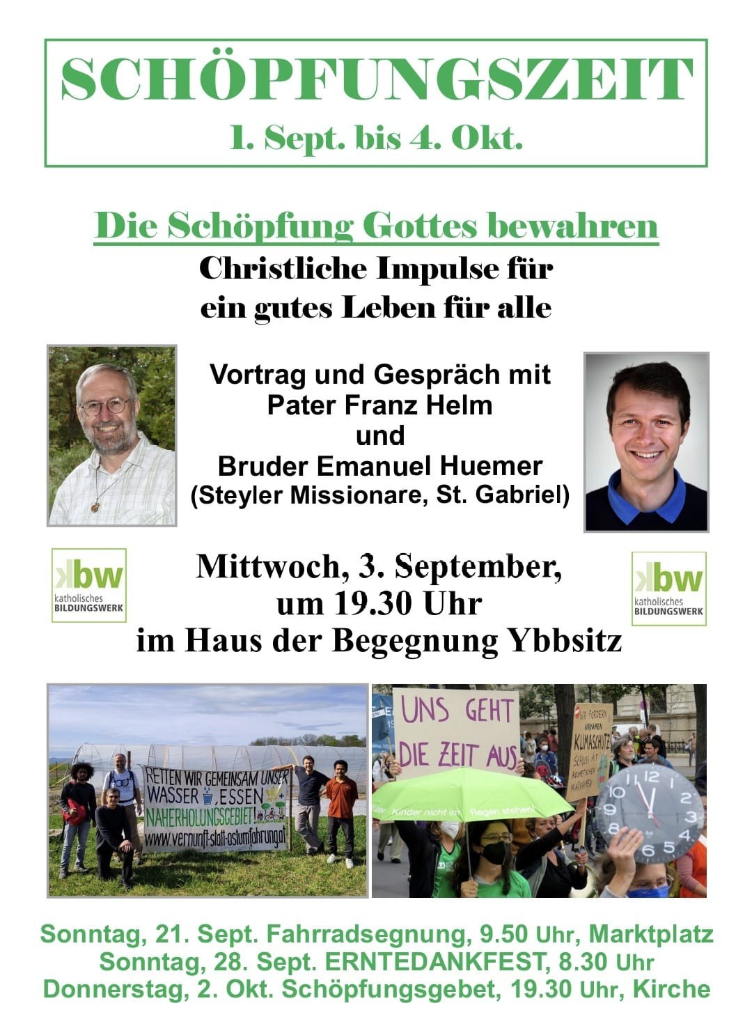 Anlässlich der Schöpfungszeit von 1. September bis 4. Oktober lädt das Kath. Bildungswerk der Pfarre Ybbsitz zum Vortrag ein: