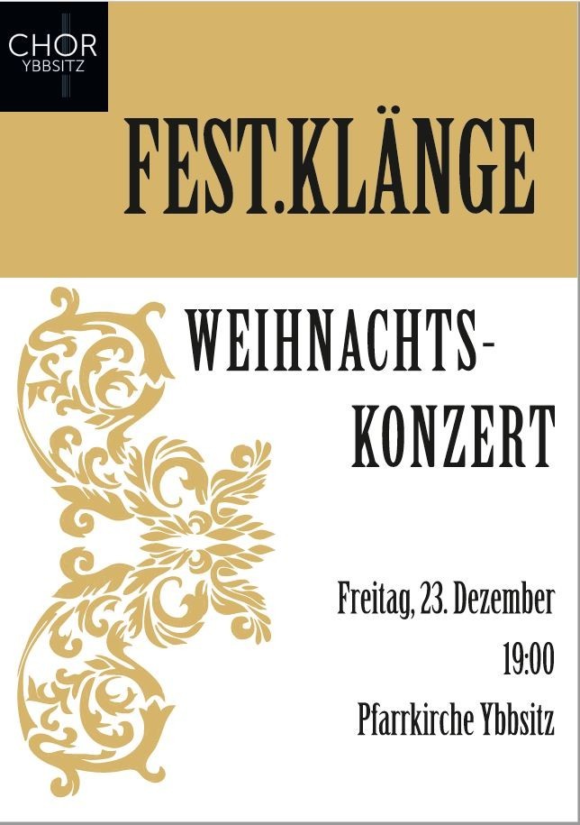 Der CHOR Ybbsitz lädt am 23. Dezember 2023 um 19.00 Uhr zum Weihnachtskonzert Festklänge in die Pfarrkirche Ybbsitz!