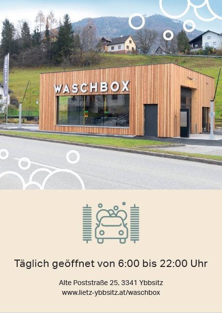 Lietz Waschbox: täglich geöffnet von 6.00 bis 22.00 Uhr, Alte Poststraße 25, 3341 ybbsitz