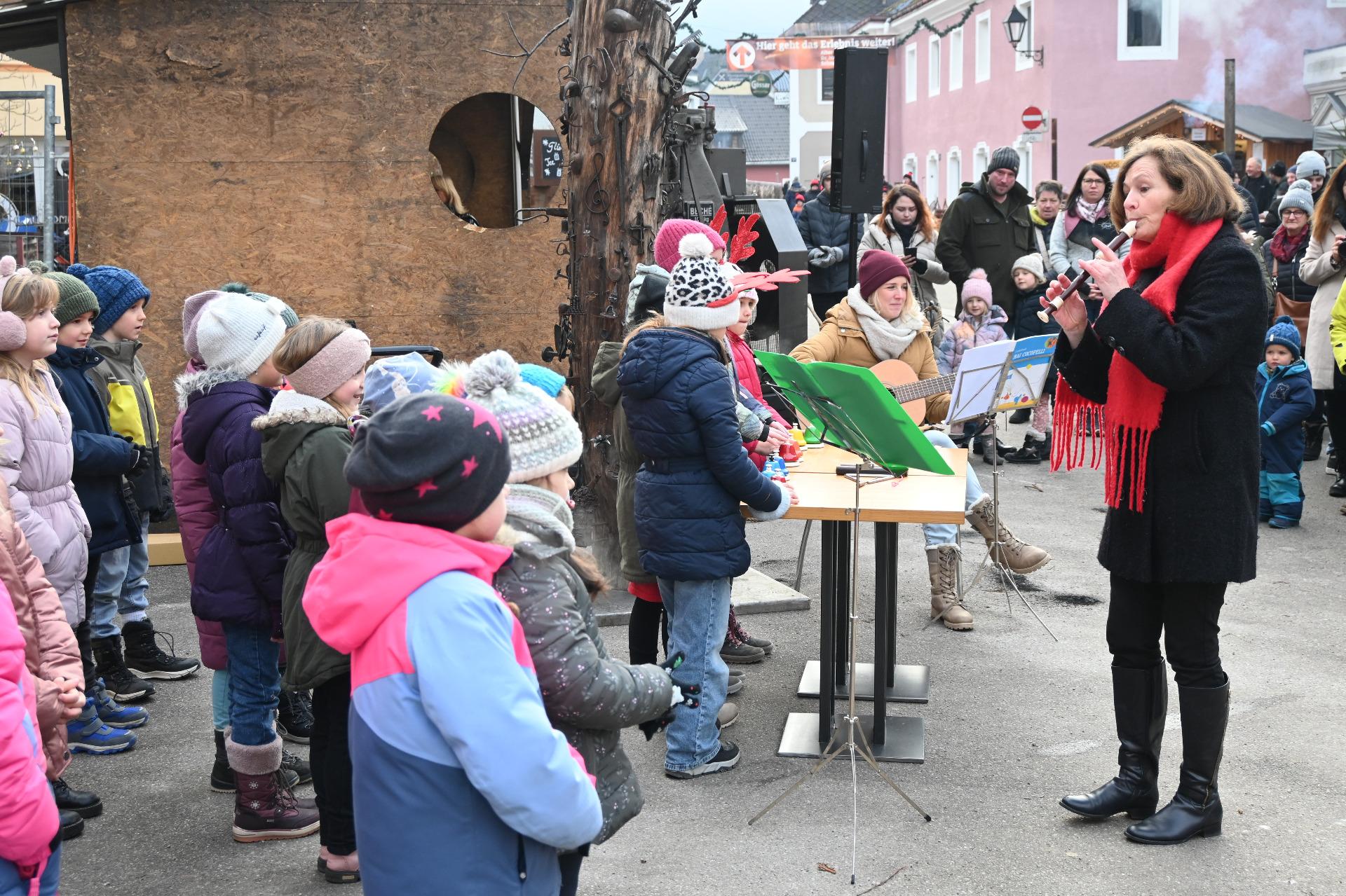 Am Samstag, dem 13. Dezember 2025, wurde die Ybbsitzer Schmiedeweihnacht in feierlichem Rahmen am Marktplatz vor dem Haus FeRRUM eröffnet. Bürgermeister Gerhard Lueger begrüßte zahlreiche Fest- und Ehrengäste, darunter Dechant P. Jacobus Tisch, Bezirkshauptfrau Mag. Martina Gerersdorfer, Vizebürgermeister Georg Stockner sowie Ehrenbürger der Marktgemeinde. Für die musikalische Gestaltung sorgte der Chor der Volksschule Ybbsitz unter der Leitung von Anna Tanzer und Juliana Lindner. Nach Grußworten von NR-Abg. Mag. Andreas Hanger hielt Hon.-Prof. Irene Welser die Eröffnungsrede.
